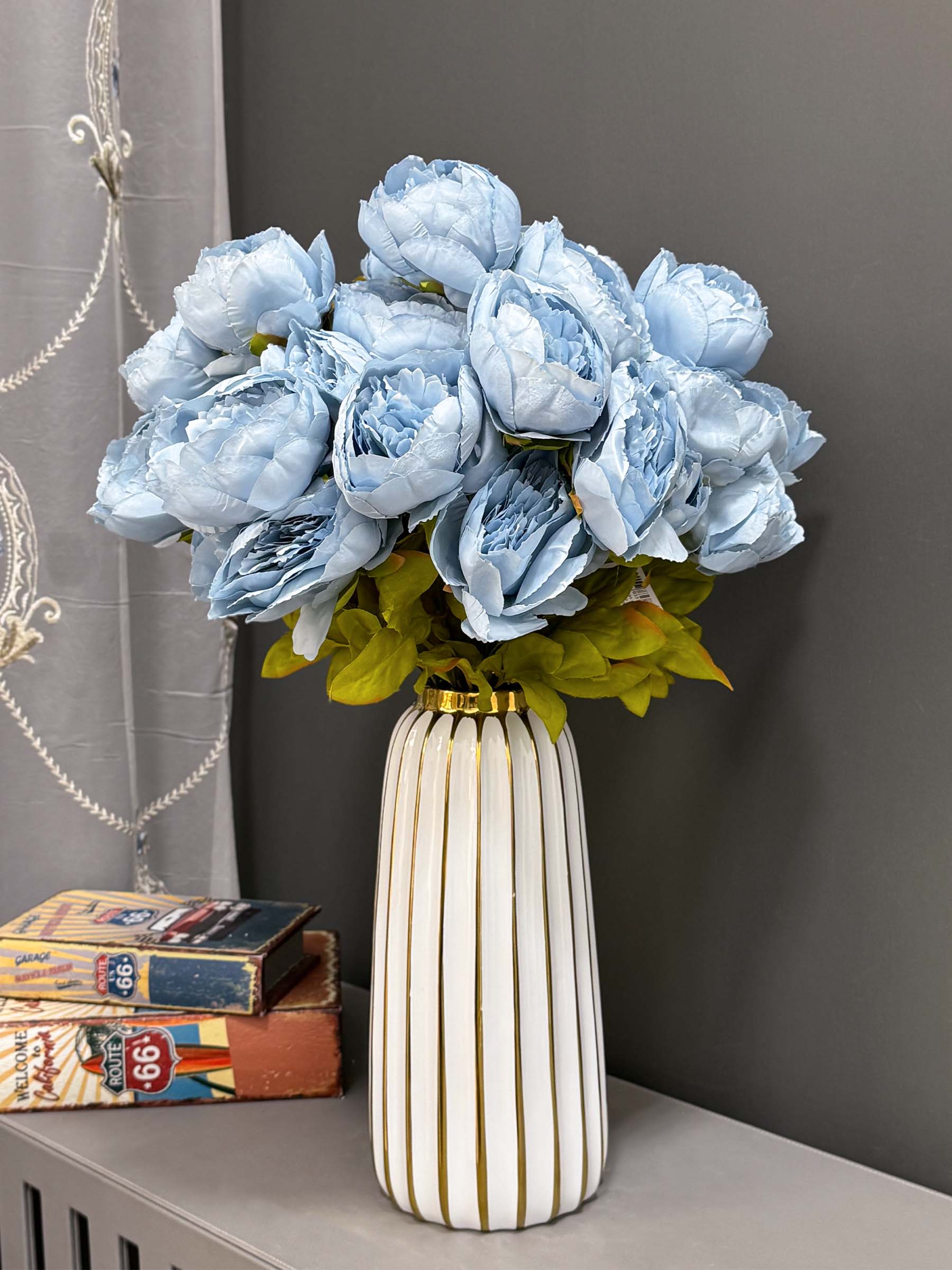 Artificial Peony Flowers Bouquet, 1 Bunche content of 7 Flowers with leaves.