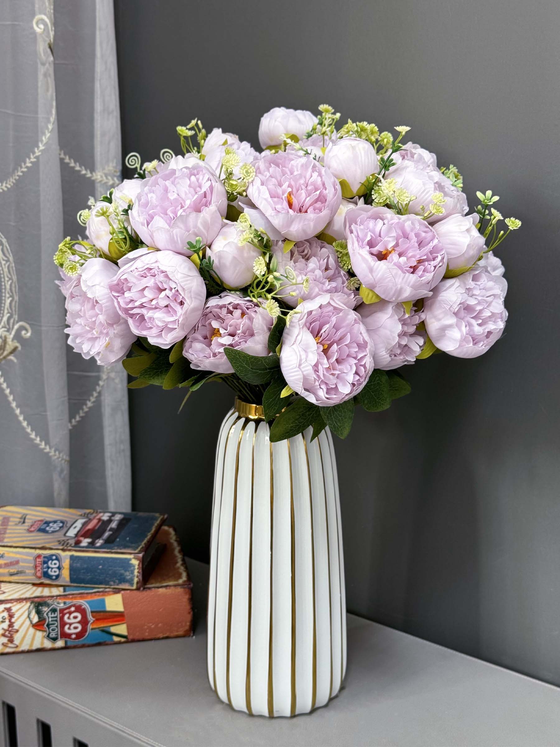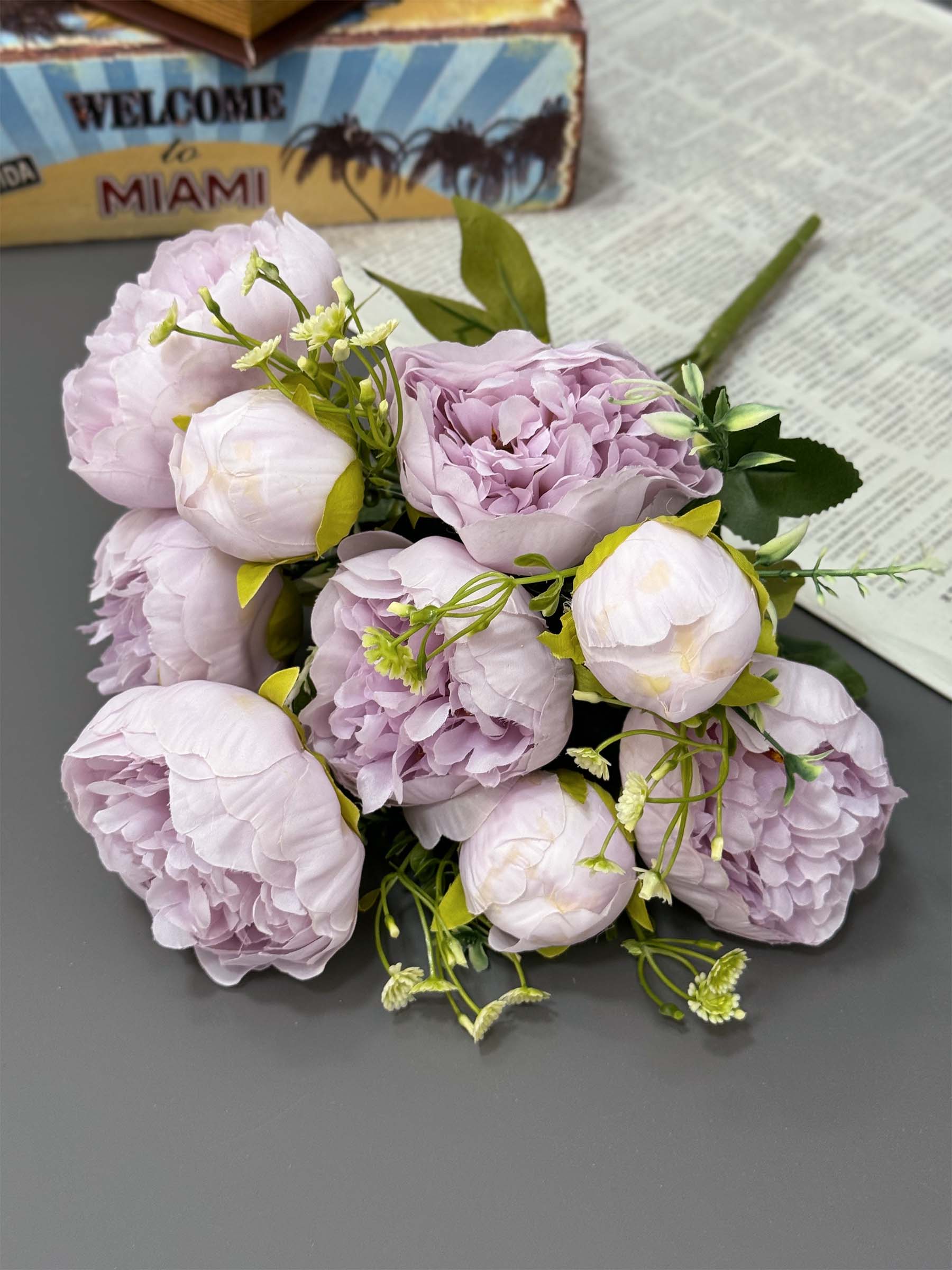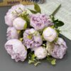 Artificial Peony Flowers Bouquet, 1 Bunche content of 9 Flowers with leaves.