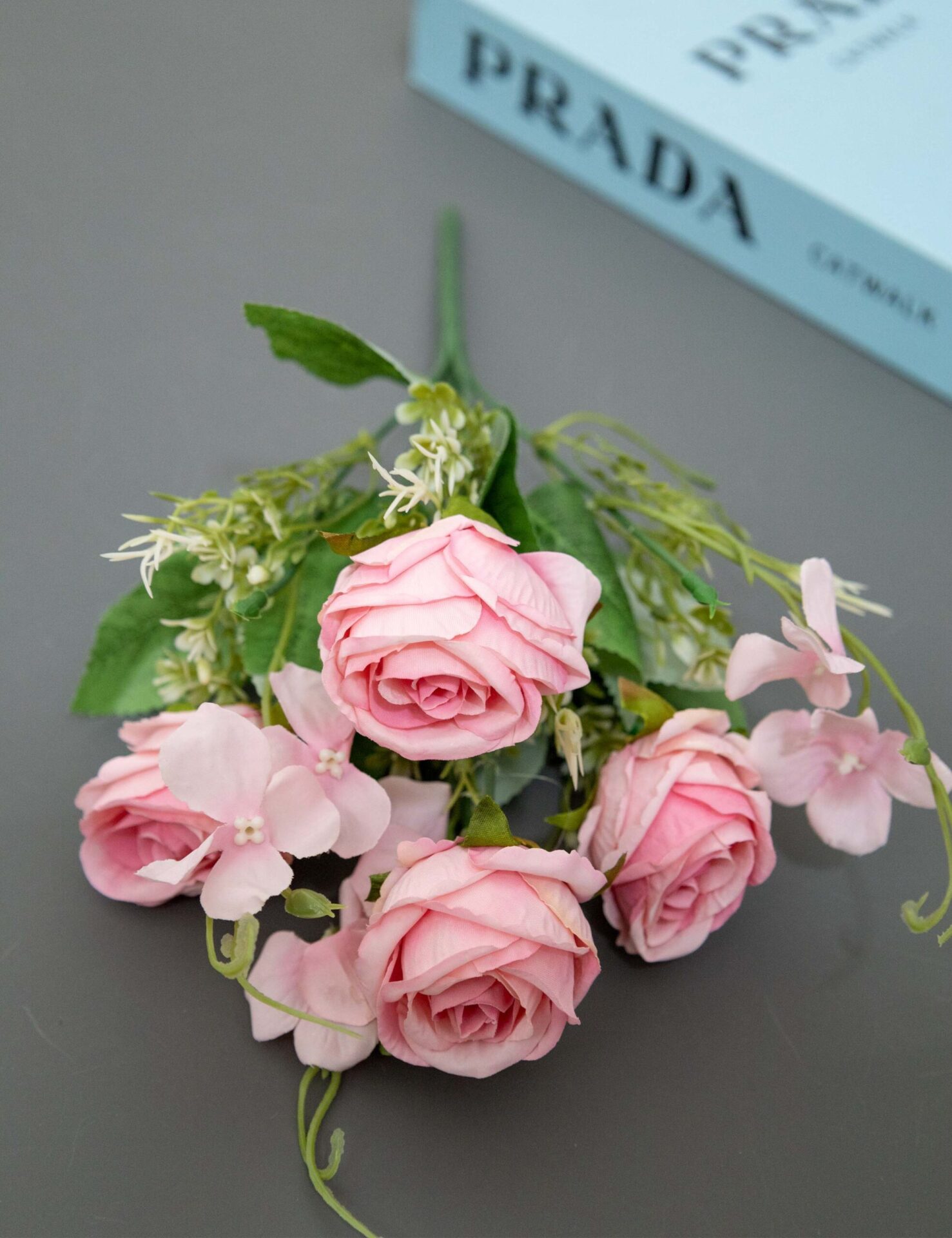Artificial Baby Rose Flowers Bouquet, 1 Bunche content of 4 Roses,accessories and leaves